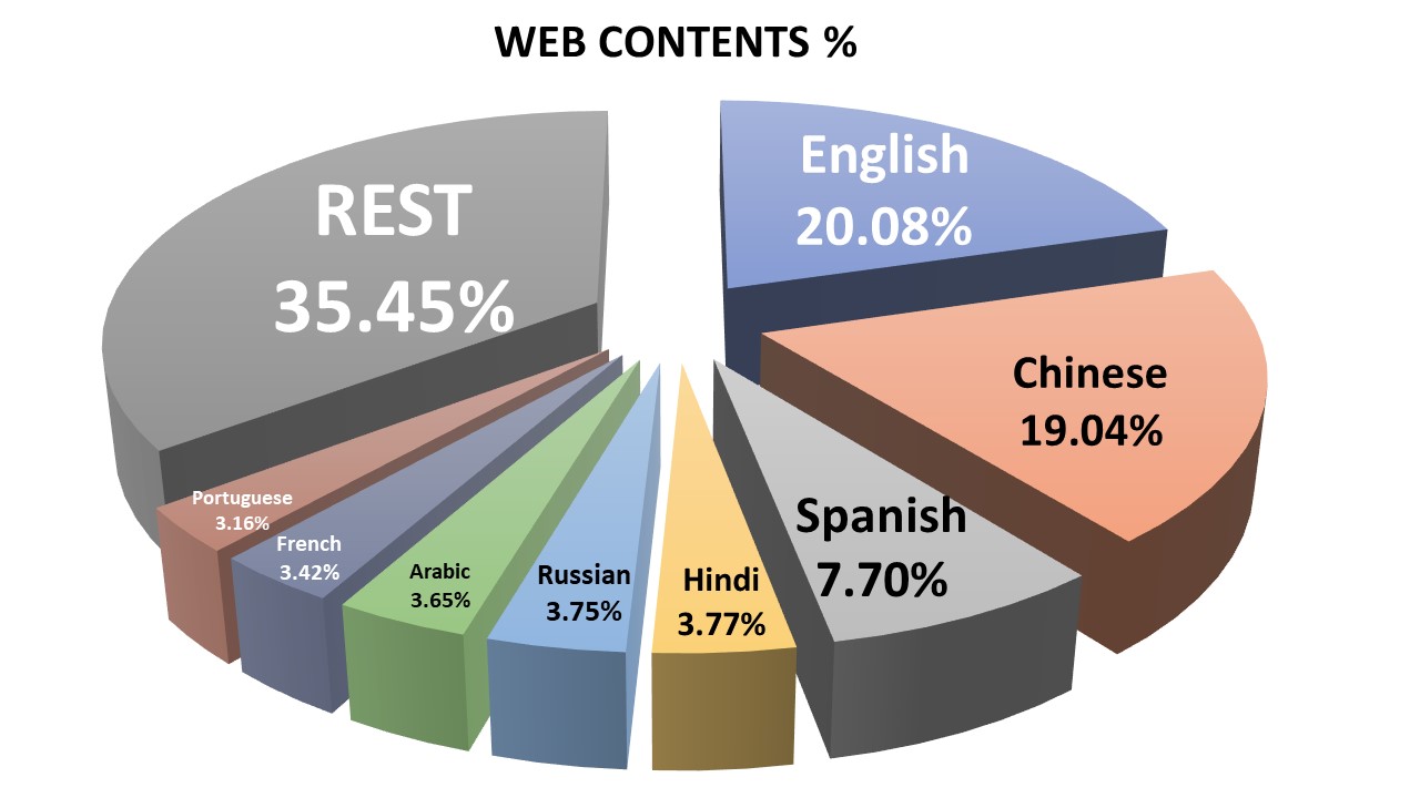 - Roughly 20% of Web content is in English and 19% is in Chinese