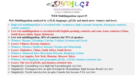 Chega o quarto estudo sobre multilinguismo na Web, realizado com base no banco de dados DataProvider.com. Desta vez, o tema é: Multilinguismo na Web analisado por ccTLD, idiomas, gTLDs e muito mais: vencedores e perdedores.
